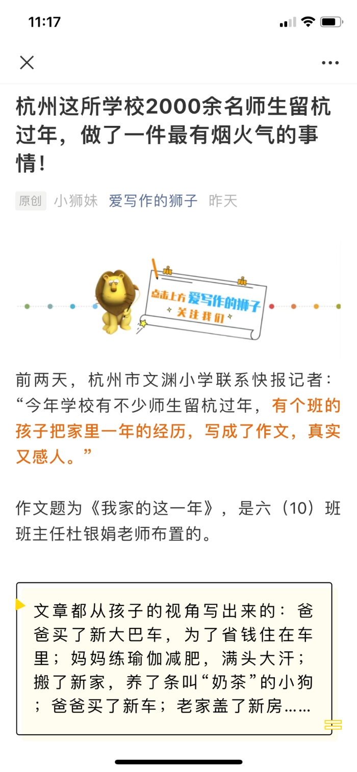 其中,都市快报记者更是深入我校,采访并报道了六(11)班杜老师组织孩子们写的作文《我家的这一年》,聚焦疫情下孩子们这一年家中的“变化”,文章都是从孩子们的视角出发写的,虽然没有华丽的辞藻,但是一定是最有烟火气的小作文,很多老师都表示看完之后被孩子们的懂事深深地感动。