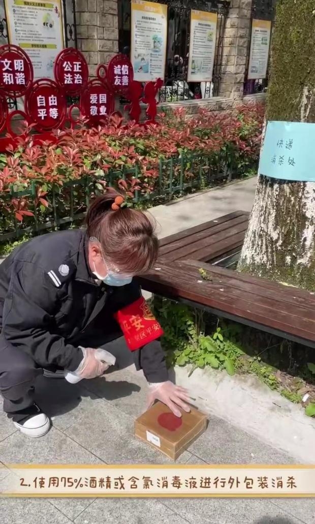 针对近期的路线流转不清的快递,幼儿园在校门口设立了专门的“快递消杀处”,并安排保健医生对安保人员进行培训,熟悉并掌握“快递消杀流程”。消杀快递需提前戴上口罩、戴好手套、戴好护目镜,用75%的酒精或含氯消毒液进行喷洒消杀,静置5-10分钟后再拆开,并及时丢弃快递盒,最后取下手套和口罩,进行手部的清洁与消毒。