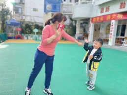 乐乐说:“在和小朋友一起玩游戏的时候要注意安全。”