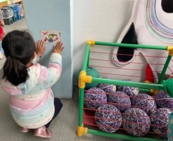 在我们的运动区里,张贴上禁止随意抛球的标志,在体育游戏时要随时注意安全!