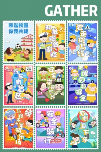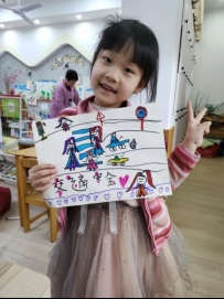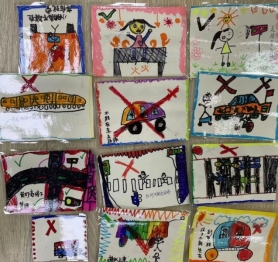 我们用了解到的交通安全知识和标志进行创作,并向大家提出倡议,“遵守交通规则,安全出行”!