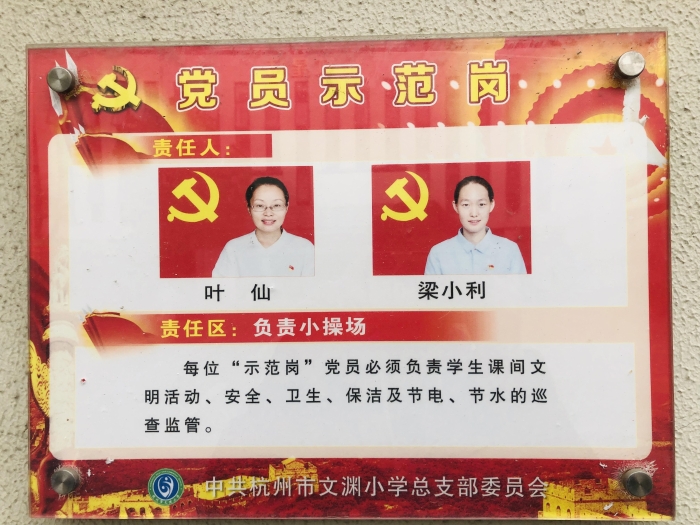 校园内随处可见的“党员示范岗”的标识牌格外醒目,每一位党员都有明确的职责,真正做到了职责到岗、落实到人。
