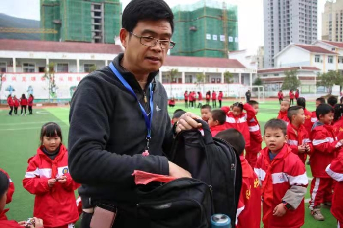 无论严寒酷暑,每天早晨你总能在学校的操场上看见他正在细心指导孩子们训练的身影。他,就是和睦小学的体育老师陈国力。