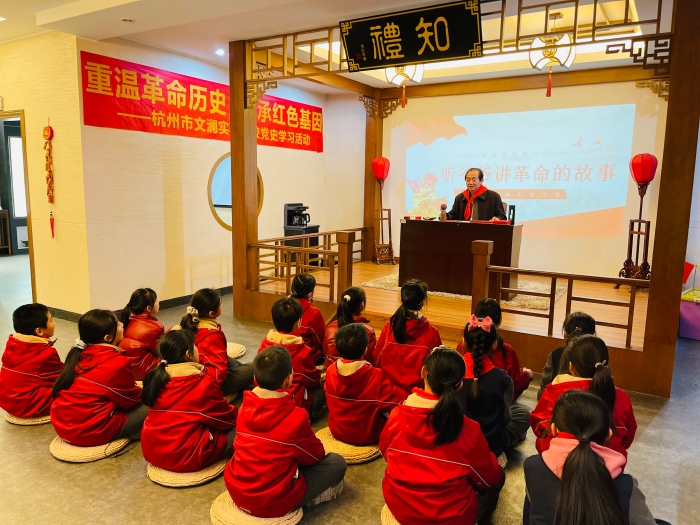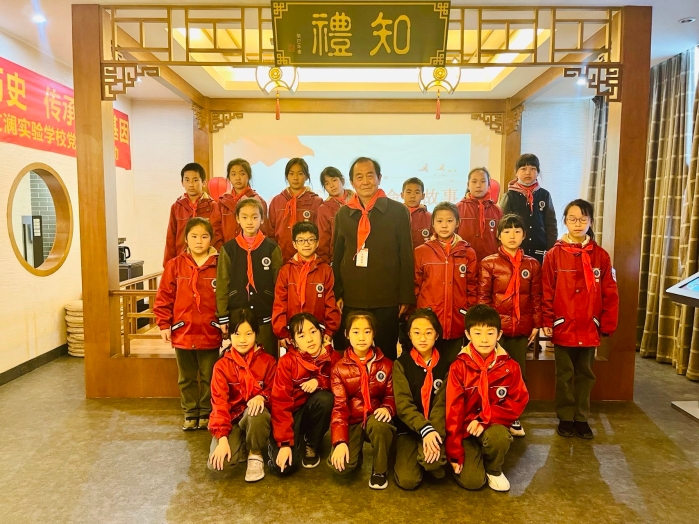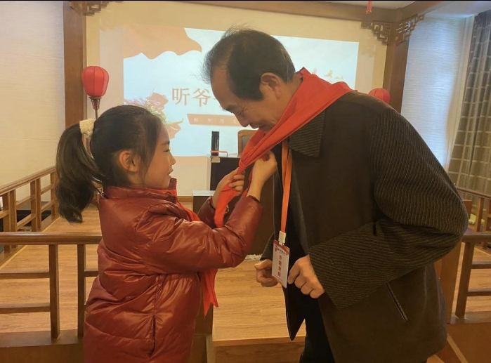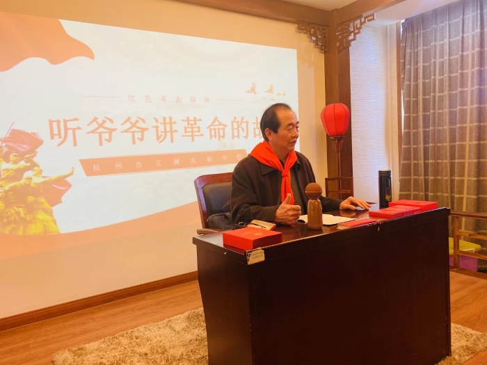 近日,在文澜社区和文澜实验学校的联合邀请下,文澜社区民兵骨干陪同辖区退伍老兵朱久荣,一起来到文澜实验学校开展党史学习活动之——听爷爷讲革命故事。
