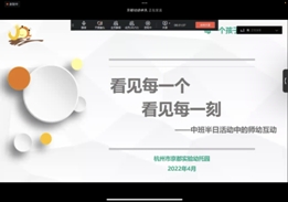 倾听与分享,链接与融合,7所幼儿园汇聚云端,分别对师幼互动评估内容进行了梳理汇报,并对此展开热烈研讨。