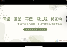 为进一步提升师幼互动质量,助力教师将科学保教理念转化为实践、在实践中建立有效师幼关系,4月25日—4月28日,杭州市凤栖幼儿园、祥符中心幼儿园、拱宸桥幼儿园、京都实验幼托园、沈塘桥幼儿园、和睦幼儿园以及紫荆幼儿园共七所幼儿园齐聚云端,聚焦《评估指南》,共研高质量师幼互动,拟解决以下问题: