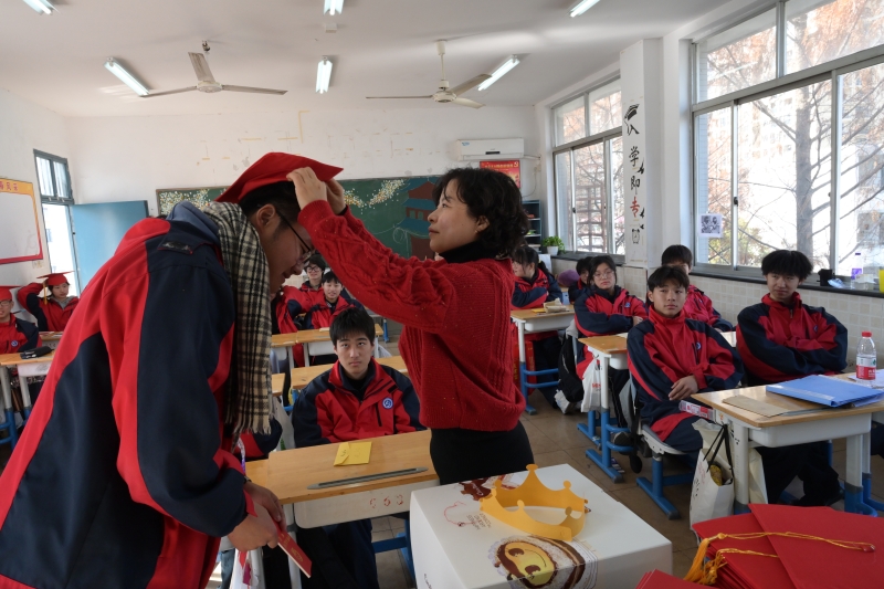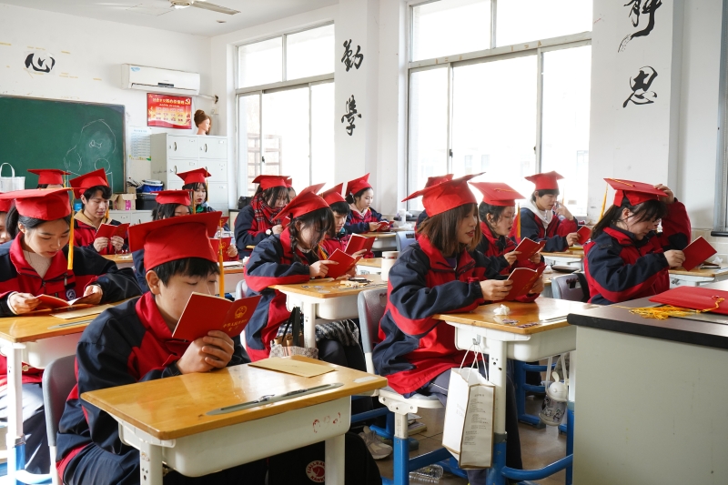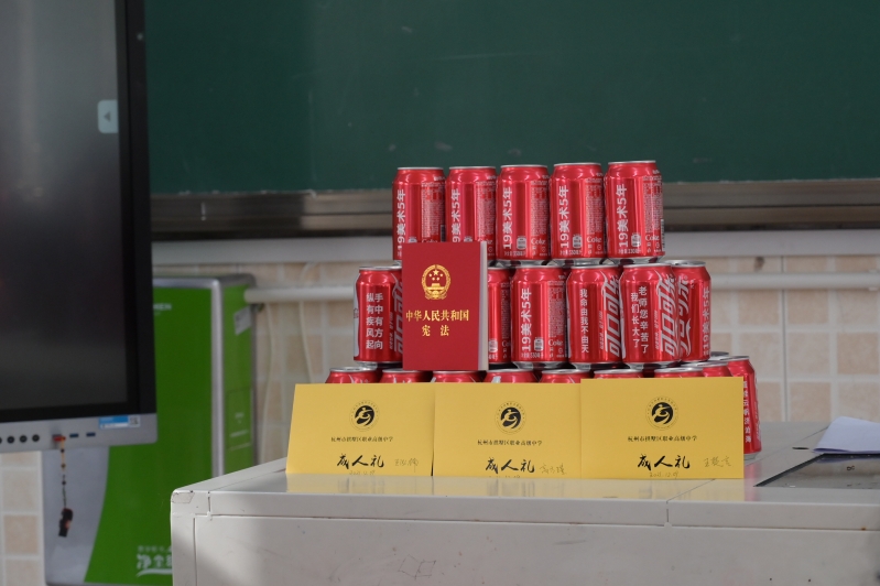 随后,班主任为同学们戴上了成人帽,并颁发了《中华人民共和国宪法》。