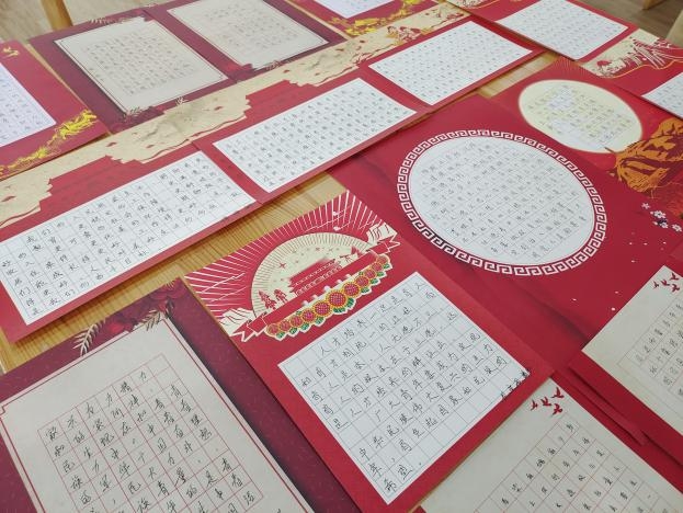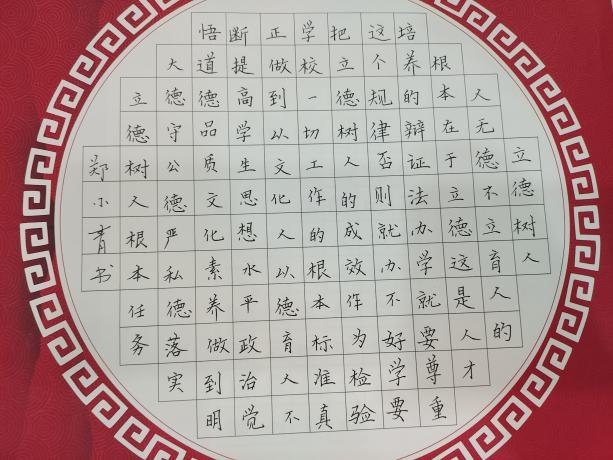 老师们把对党的深情、对教育事业的热爱、对美好生活的期盼,凝于纸墨,融于作品。通过“学习强国”等平台摘录习近平总书记关于教育的重要论述题材,笔墨动情,行笔流畅。一份份真情,或稚嫩,或浓郁,展现着教师们赤诚的爱国心!一幅幅作品,洒脱如风,或凝重如松;有似行云流水的,彰显狂放不羁的气概;有清秀淡雅的,尽显细腻温婉的味道,精彩纷呈。