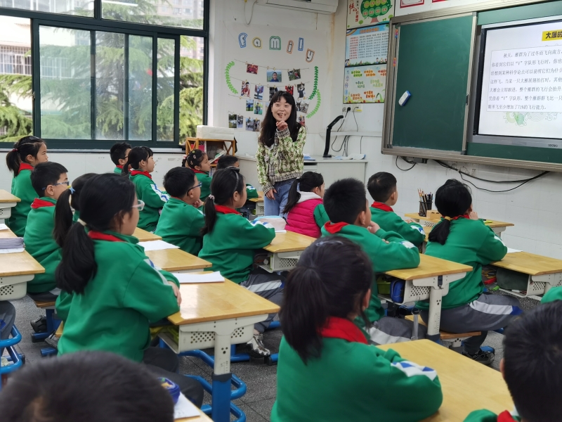 通过朗读《大雁的故事》,同学们渐渐明白了,雁群之所以用“V”字队形飞行,也是因为集体力量。当某一只大雁展翅拍打时,其他的大雁会立即跟进,整个雁群的飞行会抬升。凭借着“V”字队形,整个雁群群飞比一只单眼单飞至少增加了71%的飞行能力。