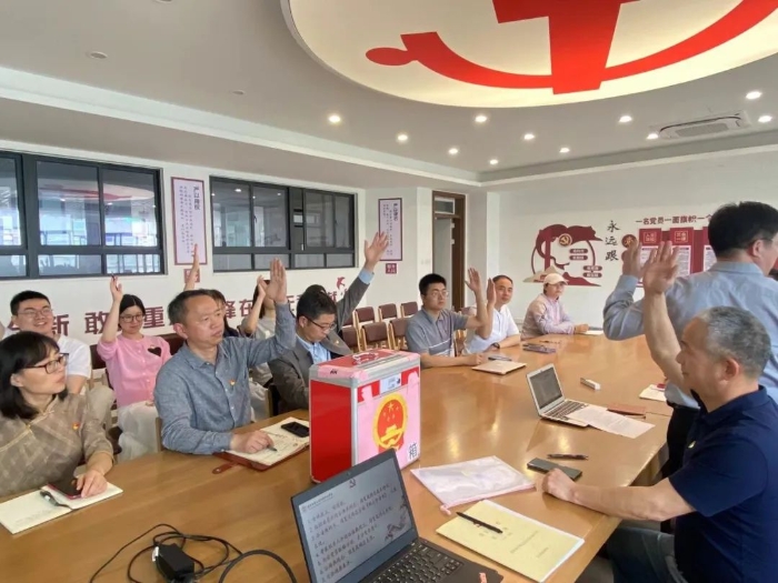 随后,与会党员举手表决,一致通过。初中党支部余光明书记宣布大会决议:同意谷海燕同志、周夏岚同志按期转为正式党员。