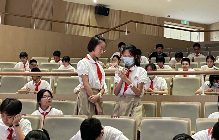 中国共产主义青年团团员,是中国共产党的助手和后备军。正值第72个六一国际儿童节,在建团100周年之际,八年级全体学生集结在火红的队旗下,举行华东师范大学附属杭州学校2022年“青春心向党,建功新时代”——八年级离队入团仪式暨14岁集体生日。党总支书记朱英应邀到场见证仪式完成,并对全体学生提出期许。