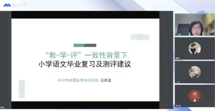 近日,bet188体育官网区小学语文第三学段“关键问题解决”专题培训暨毕业复习研讨活动在线上顺利进行。在区小语教研员、特级教师汪燕宏老师的精心设计和组织引领之下,区全体六年级语文教师相聚云端,围绕“毕业复习”这一主题,展开深度研讨。