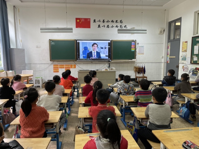 午饭过后,全体学生在老师的带领下,观看来自浙江大学附属二院眼科中心视光部主任倪海龙“爱眼护眼——眼科专家帮您答疑”的科普专题讲座。讲座以问题的形式展开,为孩子们提供很多预防近视小贴士。通俗易懂的语言,循循善诱的疑问,使得孩子们听得津津有味。