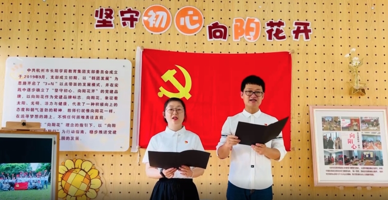 在中国共产党建党101周年来临之际,6月24日,杭州市长阳学前教育集团党支部携手团支部组织开展了“初心如磐 共庆七一”主题党日活动。