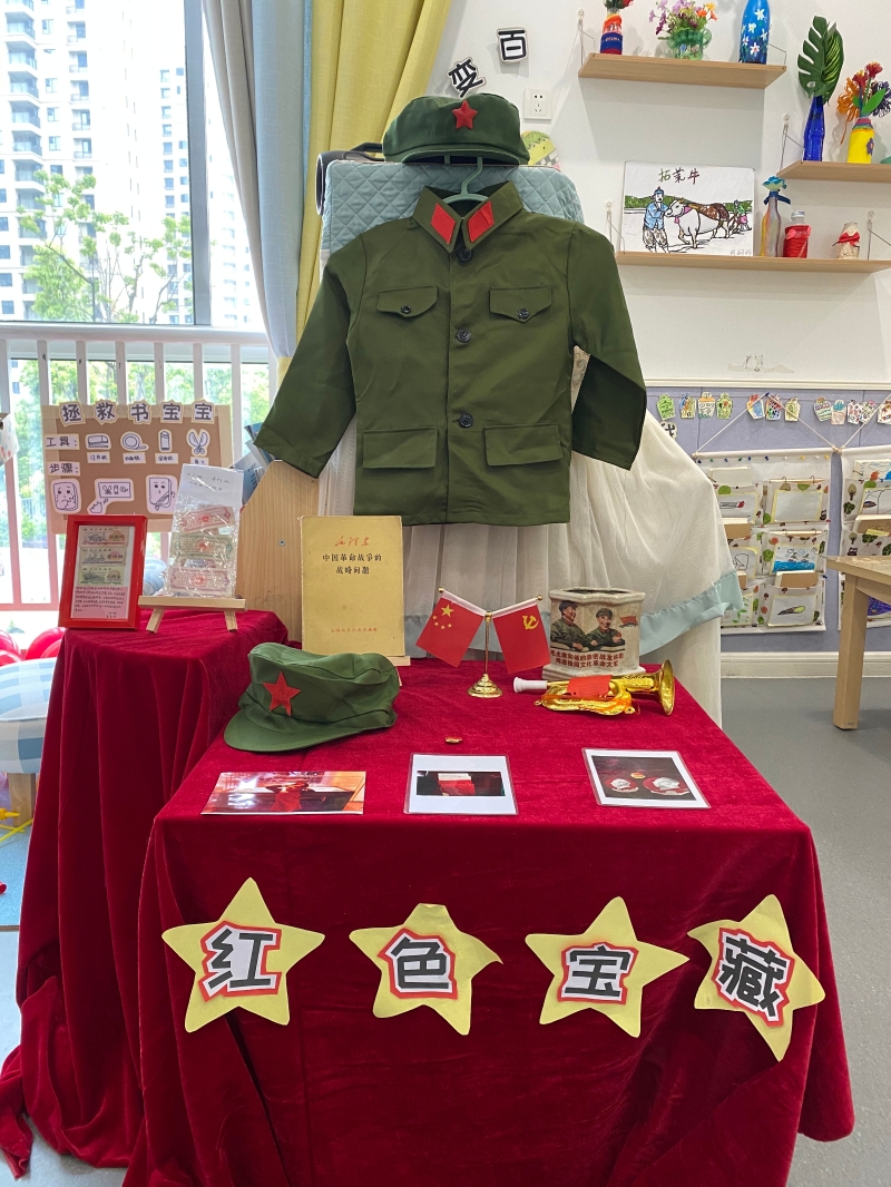 一本本红色绘本带我们重温了革命时代,读过了这么多家喻户晓的故事后,孩子们找来了自己身边的红色故事,他们将红色宝藏搬进了教室,和同伴们分享着属于红色宝藏的红色故事。