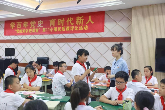 党员教师积极参与“党的知识进课堂”活动,讲好红色故事,教育学生从小听党话,跟党走,做共产主义事业接班人。