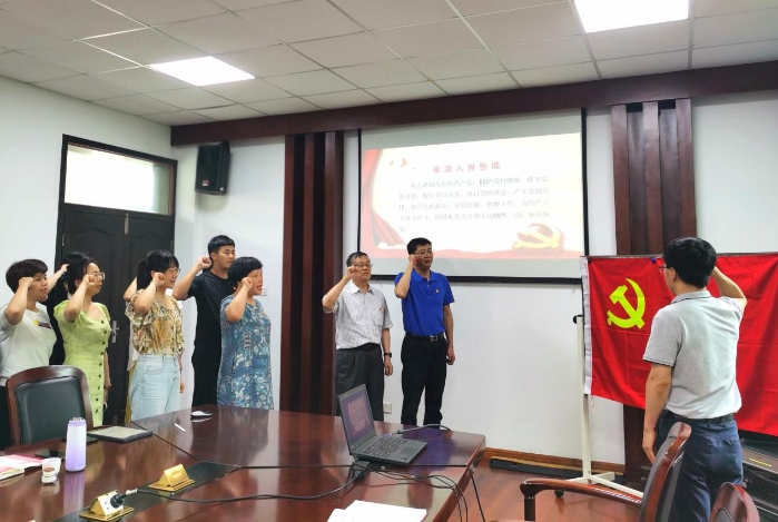 随后,两校区党支部全体党员重温入党誓词,进一步坚定理想信念,学史力行,迎建党百年、不忘初心,奋进新征程。响亮的誓词在会议室中久久回荡。