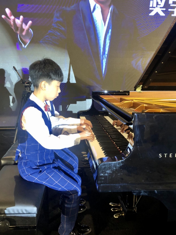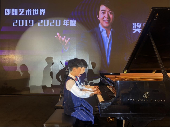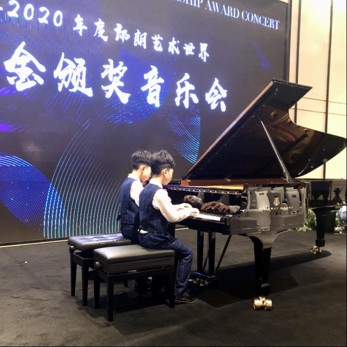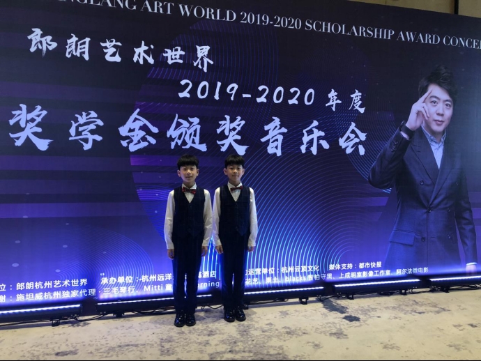 在这次的奖学金颁奖音乐会上,除了艺术世界的“校长”郎朗以外,来自我校四年级的双胞胎兄弟许子涵、许子轩同学,经过了一年半的钢琴学习,也在舞台上展示了自己的学习成果。