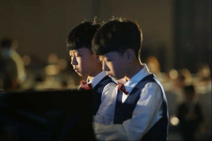 可爱的兄弟俩为观众们带来了四手联弹《美国巡逻兵》,轻巧跳跃的音符在指尖流淌,获得了观众热烈的掌声。