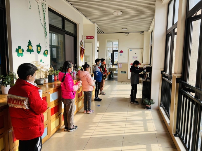 每一份提案,胡校长也都一一阅读,她关注到了队员们提出的关于学校增设饮水机的提案,原来,位于东面教学楼的队员们需要走过长走廊到西面的开水房打开水,这让大家觉得十分不便,建议学校能够在每层楼的东侧增设一台饮水机。胡校长在与几位提交提案的队员交流之后,马上联系了学校的总务处老师,决定采纳队员们提出的方案。饮水机放置在哪个位置最不影响同学们在走廊的活动?购买哪种饮水机最适宜?在经过一系列的讨论与安排之后,这几台饮水机在今天到来啦!走出教室便能够打到开水,下课后,新设置的饮水机旁围满了人,大家都十分喜欢这位“新朋友”。
