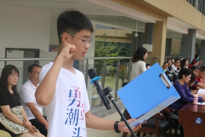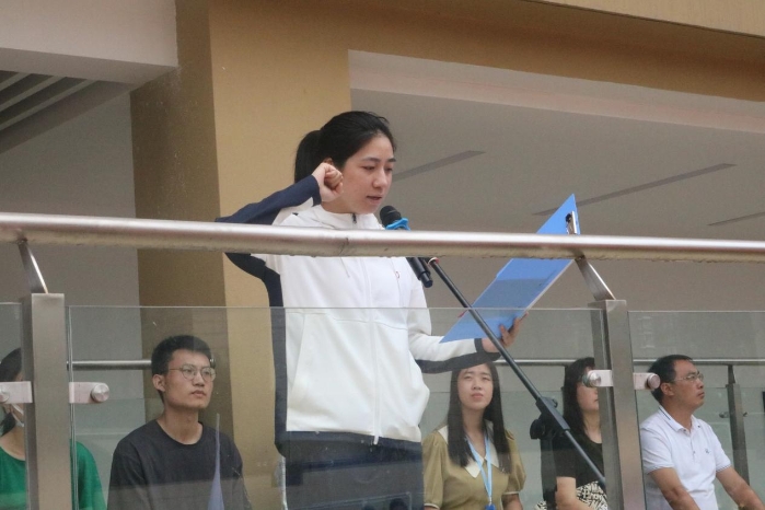 运动员代表801班雷雨鑫同学和裁判员代表黄熙瑜老师郑重宣誓。