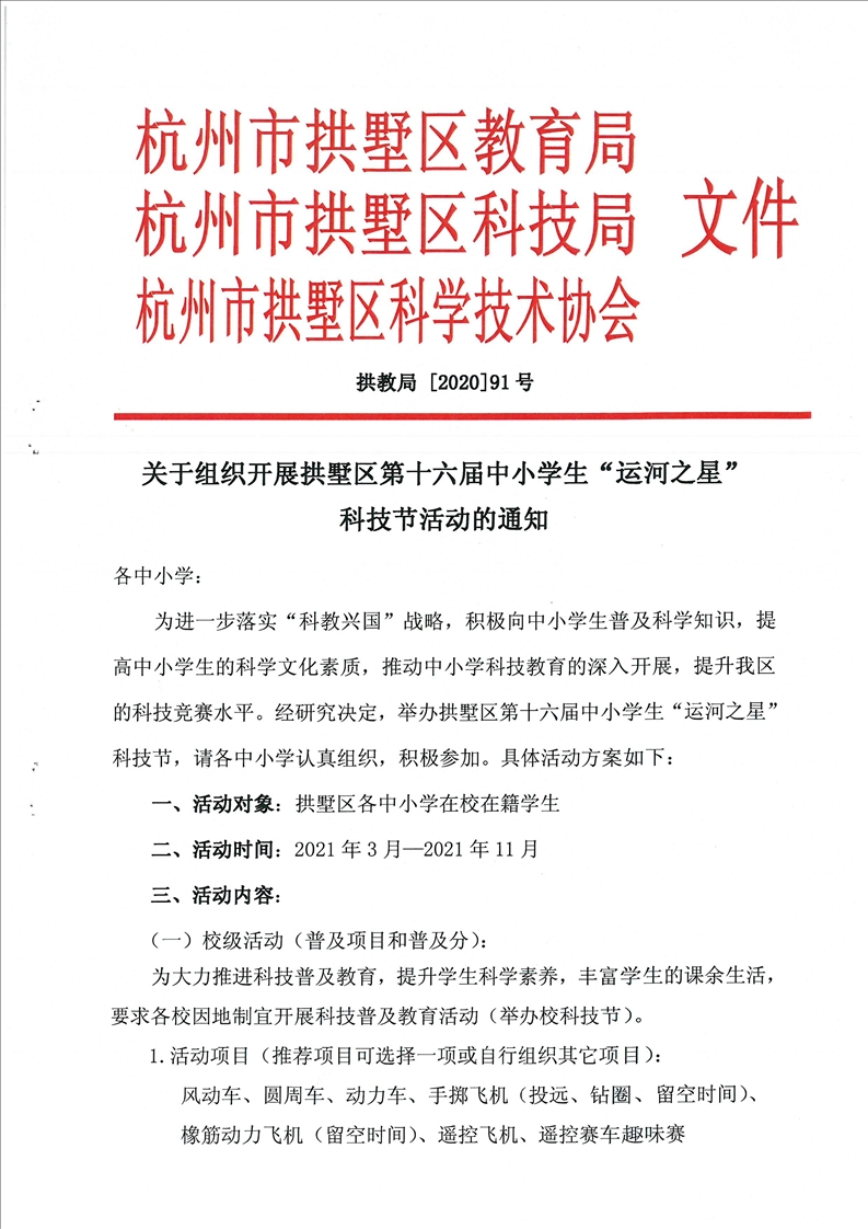 关于组织开展bet188体育官网区第十六届中小学生“运河之星”科技节活动的通知