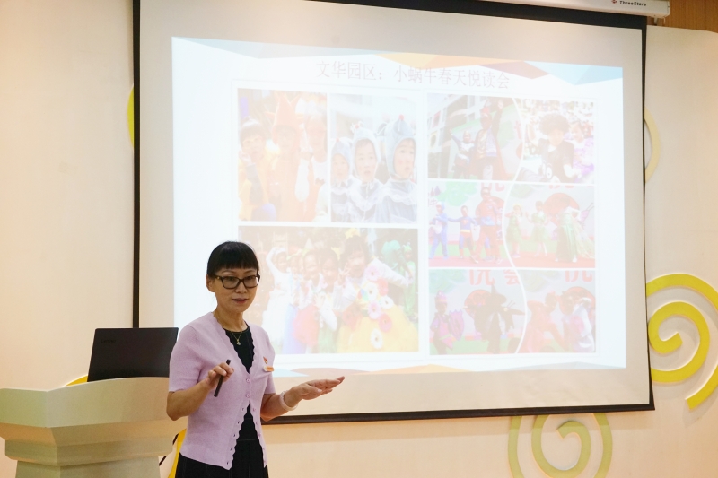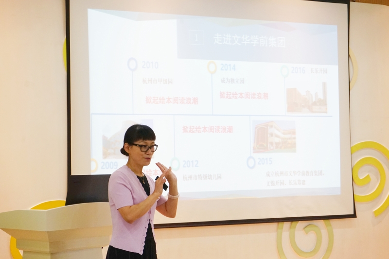 杭州市文华学前教育集团王连园长向实习生们介绍了集团历程以及三个园区的基本情况,并且对共同性课程和个性化课程的特色课程内容做了详细的介绍,让实习生们进一步了解到文华学前教育集团是秉承悦读、悦玩、悦幸福”的办园理念,打造“悦读童年”课程的,使得实习生们对如何促进幼儿身心和谐发展有了认识。