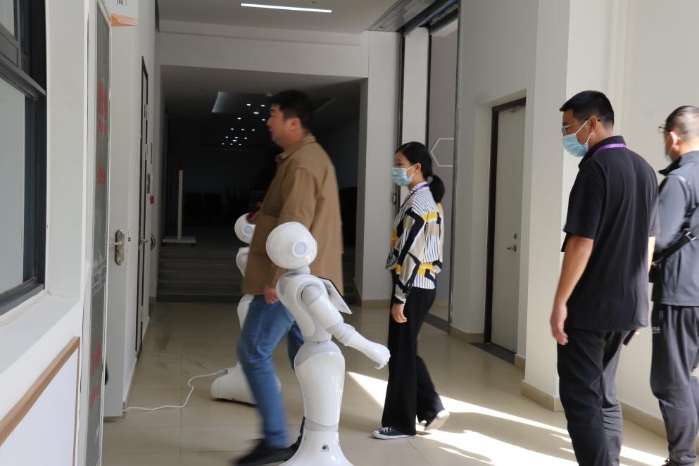 走进智力运动中心,充满科技感的机器人热情迎接着与会的来宾们。该中心共设置四大功能区,包括编程空间、赛事空间、行知空间、工程空间,配备纳茵特积木式教育机器人、竞赛机器人、大疆的无人机等人工智能普惠教育产品,功能涵盖多场景组合需求,满足理论教学、编程教育、工程实践、跨学科研究等不同的教学场景,服务于学生们的竞赛需求。与会代表们驻足于垃圾分类机器人等产品前,观摩机器人的精彩演示,倾听社团学生的详细介绍,频频点头称赞。智力运动中心着力培养学生的科学探索和创新能力,展示了文晖实验的科技特色,彰显了文晖实验自由创新的精神内核。