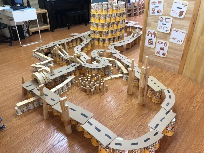 生活中的牛奶杯也绝不能浪费哦!大班的孩子们用巧手将自己喝完的牛奶杯制作成“运动小盒”,用来放置自己的跳绳,品尝完美味的同时,还能为我们的健康再次使用。当然,变废为宝中少不了纸板的创意制作,孩子们将纸板作为画纸与建构材料,让大家的区域游戏增添了别样的趣味。一件件各具特色的创意玩具在幼儿园进行展示并宣传,促使身边的人也有一个环保的意识。