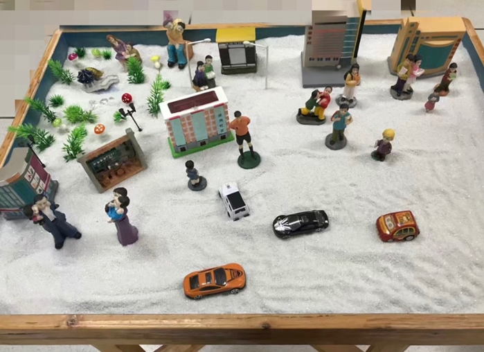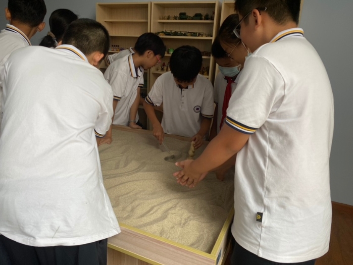 学生通过沙盘活动进一步了解和认识自己,营造真诚开放、包容的心理氛围。