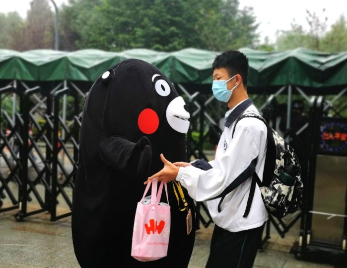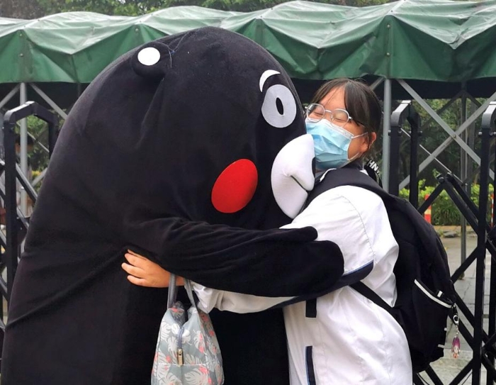 王丽阳老师:“啊,王老师那只熊原来是你!”“早晨我都没抱到,好可惜!”这是同学们发现玩偶服下是我后的对话。心理健康活动周,给同学们送去拥抱,作为教师真的感觉意义非凡。有些羞涩的同学会拍拍我玩偶的手,有些外向的同学会给你一个大大的拥抱。作为班主任有些同学发现是我之后,会特意会从班级跑出来给我拥抱,那一刻真的感觉很温馨。从玩偶服的小洞中发现他们自信阳光的笑脸,看到了属于他们的青春与活力。这次活动与其说我给学生送去快乐,不如说他们让我收获了心里的温暖!