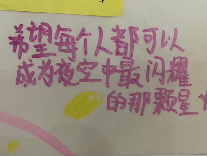 学校的金色大厅展板设计为同学们提供了一个合理宣泄表达的渠道。如“让爱弥漫”展板旨在表达在生活中,总有一些事情在感动着我们,也总有一些人在温暖着我们,此时此刻,同学们可以将这份爱与感动续写、传递;“能量墙”也是希望风雨人生,我们能够随时为自己补充能量;“心晴”意在为学生提供一种绘画方式表达情绪,想我所想,写我所思。