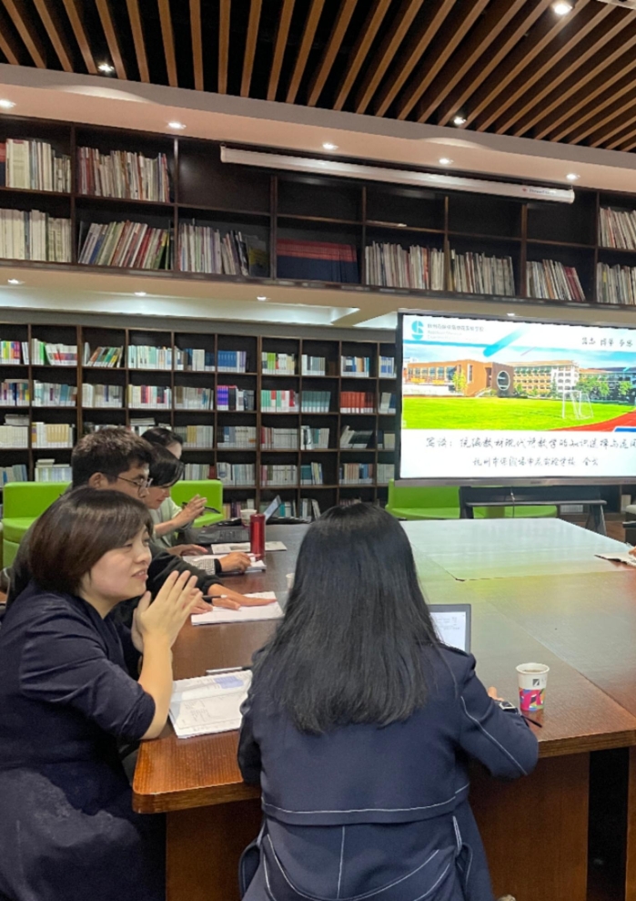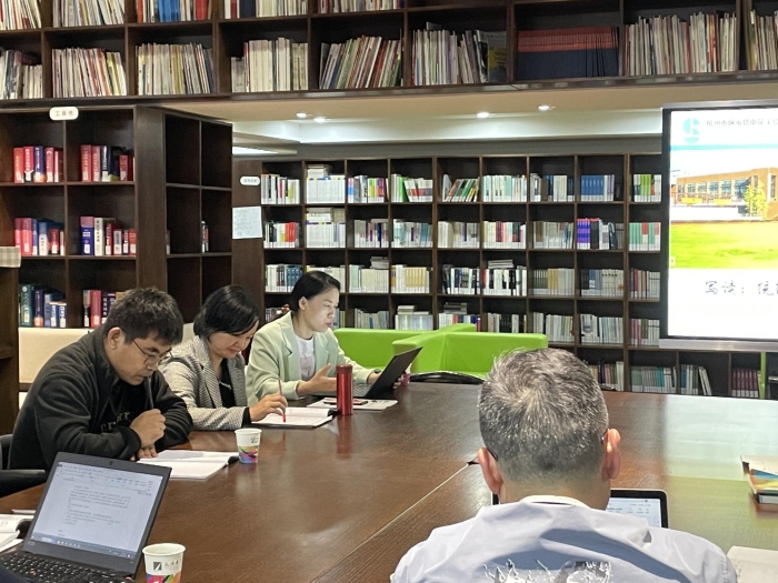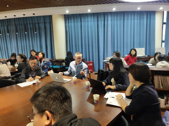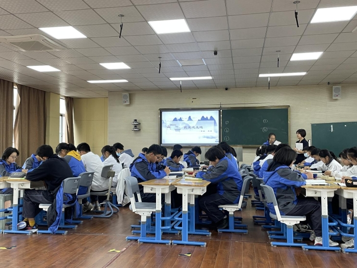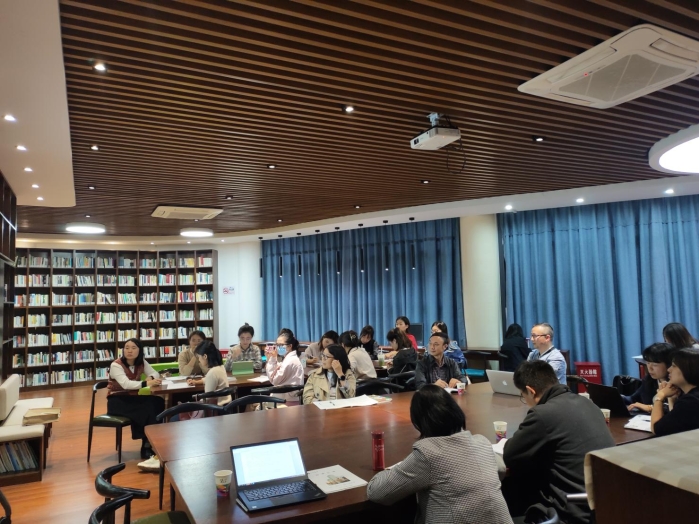 步履遇清秋,十月怀期盼。为探讨“双减”背景下深度教学,让减负增效落到实处,充分发挥名师的示范、引领、辐射作用,促进教师的专业成长,2021年10月27日,王守洪、潘素文、朱兴祥、何立勤四大名师工作室,相约在杭州市长阳中学开展“现代诗歌”教学研修活动。活动由潘素文老师主持,四个名师工作室20多位成员及长阳全体语文教师参加。同时,我们有幸邀请了“重量级”专家——浙江省特级教师、正高级教师、杭州市保俶塔申花实验学校校长金戈老师莅临指导。整个下午,语文老师们在馥郁诗香中,共话现代诗歌教学,在研讨中进行思维碰撞,在专业化的指导中汲取教学的力量。