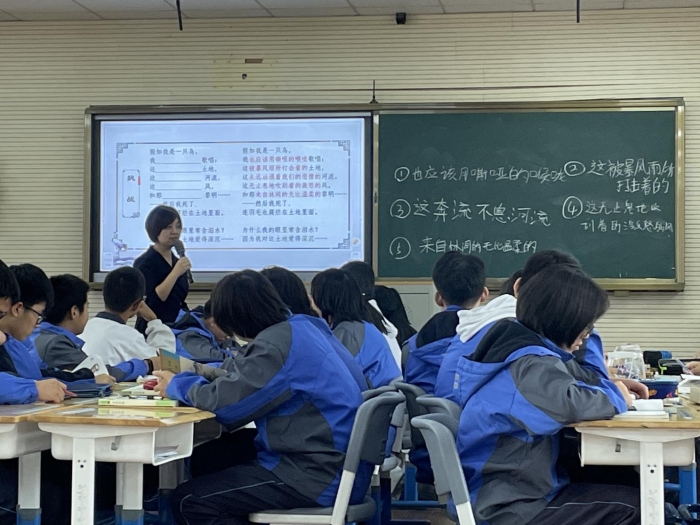 文澜中学高娜老师授课九上第一单元《我爱这土地》。高老师教态自然大方,语言简洁而富有诗歌的激情,课堂重点突出,层次分明,结构紧凑,以朗读为主线,通过指导性教读到学生个性化品读,课堂有扶有放,巧妙落实语文要素。