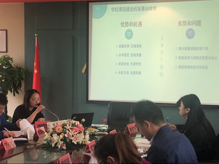 首先,文晖中学教科室傅柳霞老师从学校课程建设的背景和依据、学校课程的结构与设计、课程的实施与评价、课程的组织与保障四个方面汇报了文晖中学课程规划方案。