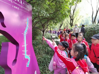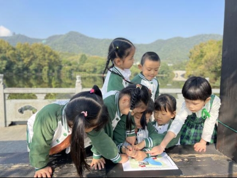“大运河一共有多长?是谁挖出它的?”面对绵延不绝的大运河,虎山园区大班的孩子们好奇的问道。教师指着徒步道边的运河流经图为孩子们解答后,孩子们不禁感叹古人的智慧。在停停走走间感受大运河的旷阔之美,又在秋日游玩中了解、走进我们璀璨的大运河文化。