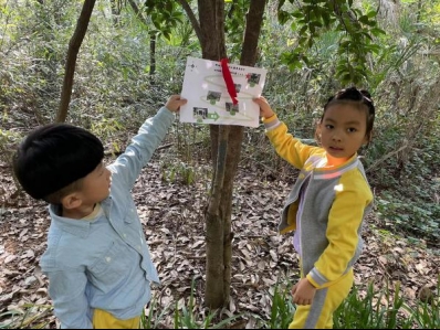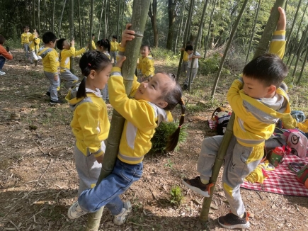 在河边,中班的幼儿们在徒步中观察秋季的花、草、树木的,感受他们的变化。到了竹林,孩子们就像是竹林里的小精灵,自由地嬉戏、奔跑,感受秋日带来的不同感受,体验秋游徒步打卡的乐趣。