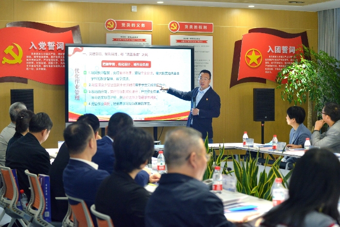 以生为本,学法变革,向课堂要质;把握学情,优化设计,给作业减负;缓解焦虑,学后托管,将温暖延续。作为区首批“党组织领导下的校长负责制”试点单位,学校始终把“清廉学校”建设作为党建重点工作,以不折不扣落实“双减”为抓手,从五方面抓好建设:党建引领、聚焦双减,树“清正廉洁”之风;依法治校、民主管理,固“风清气正〞之本;榜样选树、清风监督,塑“清正廉洁”之形;课程融入、文化熏陶,夯“风清气正”之基;点面结合、环境育人,创“清廉学校”之范。