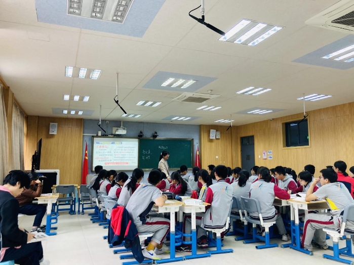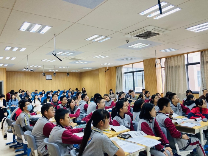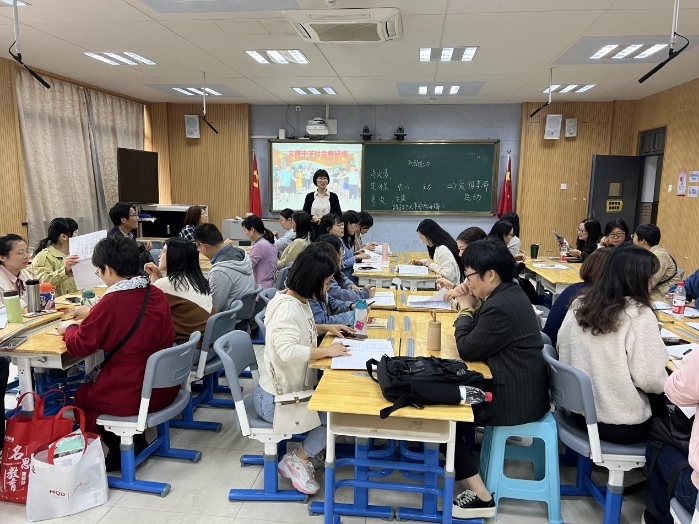 随后,文晖中学社会组张君丽老师呈现一堂展示课《五四运动》。她用罗家伦的口号贯穿全课,巧借微项目化学习,通过驱动型问题设置,层层突破落实重难点。全课通过视频、老照片、切合主题的背景音乐,让学生沉浸课堂,引发学生共情;通过年代尺等历史教学工具,激活学生既往经验,形成新的经验。全课落实“立德树人”理念,潜移默化渗透学科德育,在浓浓“历史味”中让学生经历一场有意义的学习之旅。 元培中学的老师对张君丽老师的课给予高度评价,课后两校社会学科老师还展开深入研讨,给予张老师很多宝贵的意见。接着文晖中学社会教研组长戴红燕老师就教研组建设做了主题发言,展示文晖中学社会教研组风采,交流教研组成功经验,并抛出几个教学中的困惑,与参会老师一起探讨。教学交流的最后,两校老师还分年级备课组进行针对性交流,初三备课组与元培中学初三老师共同分享了面对中考的具体教学策略。