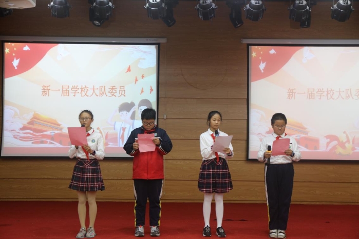 大队总辅导员廖老师在大队委就职仪式上向新一届大队委提出希望。希望大队委员用自己的实际行动为同学服务,为少先队、为学校做出贡献。同时也希望,我校的少先队员在新一届大队委的带领下,积极开展各项丰富多彩的活动,支持和配合他们的工作,携手并进,本着认真细致的态度,为我校少先队工作再创新的辉煌!大会在队员们响亮的呼号声中,胜利闭幕。