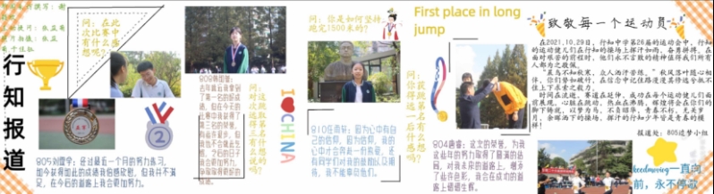 项目化学习非常注重创建真实的驱动性问题和成果,校运动会持续时间长,内容又丰富多彩,可看性强,学生的参与面又很广,我们将新闻活动探究单元的教学和校运会结合,使他们主动投入到活动探究单元的学习中。整个过程中,教师基于新闻阅读的知识,组织学生活动,帮助学生在真实的情境中真切地体验形成。