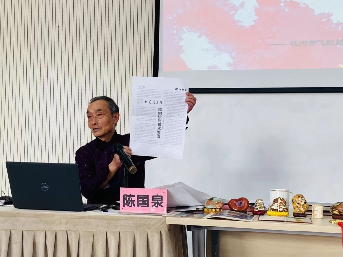 陈国泉老师讲述了作为核弹参研者的尘封往事,艰难的经历一步步磨炼着他的意志,让他养成不怕困难、不怕吃苦的“石头”性格:“因为石头坚硬无比,代表着不会轻易向困难低头;因为石头可以提炼出很多的矿物质,代表着无私的精神;因为石头有着形色各异的模样,代表着生活的丰富多彩!”也正是因为石头的坚韧,陈国泉老师继续发扬“两弹一星”精神,他提出:在学习的过程中要向书本学习、向他人学习、通过自身实践不断进行学习,汲取更多的知识丰富自己;在生活中要有爱心、恒心、耐心,保有一颗真挚的心才能够让生活更加美丽!