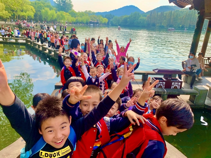 这个十月,一忽儿骄阳似火,一忽儿又寒雨绵绵。不经意间,我们迎来了秋高气爽的秋游日。虽然因为疫情防控原因,原定的浙江革命烈士纪念馆不能开放,但是五年级的同学们还是兴致勃勃,一路欢声笑语来到长桥公园。大家听老师讲了西湖的三绝:“孤山不孤,断桥不断,长桥不长”,了解了关于长桥的爱情故事,又排着队走了走长桥,感受到了秋天西湖的美景。是啊,课文中的民间故事发生地就活灵活现的展现在孩子们的面前,看着远处的雷峰塔,近处的西湖,大家在草坪上奔跑玩耍,尽情享受杭州的人文美景,为自己是个杭州小伢儿而自豪!