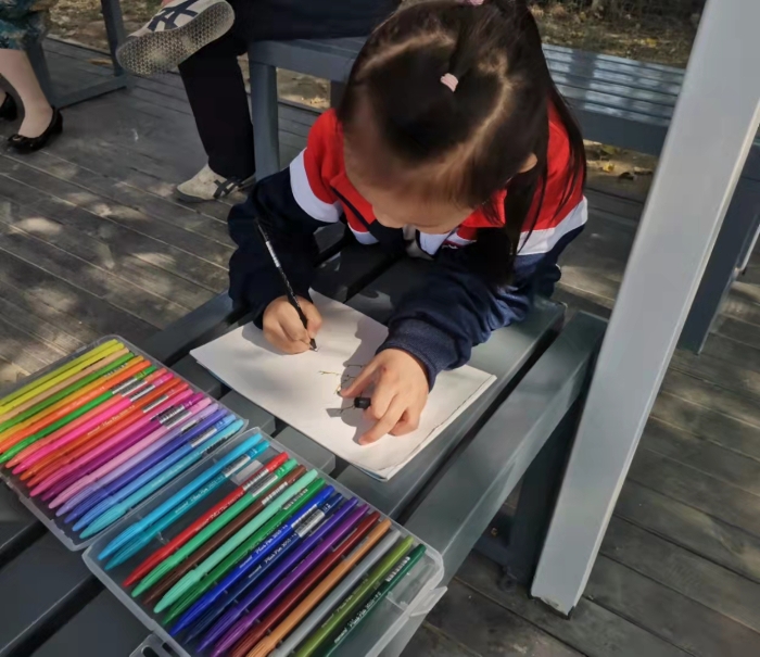 秋意浓,趣意生。一年级的小朋友开启了他们小学的第一次秋季研学之旅。孩子们循着秋的足迹,手拉着手在良渚遗址公园中寻找秋色。感受秋景,我们在纷飞的落叶中放飞纸飞机,探索飞行的奥秘;触摸秋趣,我们拿着胡萝卜,小心翼翼地喂食梅花鹿。眼睛里充满了惊奇。