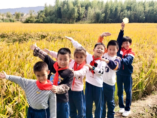 走进良渚古城遗址公园,迎面的是满眼的秋日美景。金黄的稻穗躬身随风自在摇摆,欢迎着远到的人民伢儿。孩子们徜徉在纵横的乡间小道上,一路指点“荷尽已无擎雨盖”,一路放目骋怀碧空万里,一路体验落叶缤纷,良渚的秋意秋色融化在孩子们的欢声笑语中。