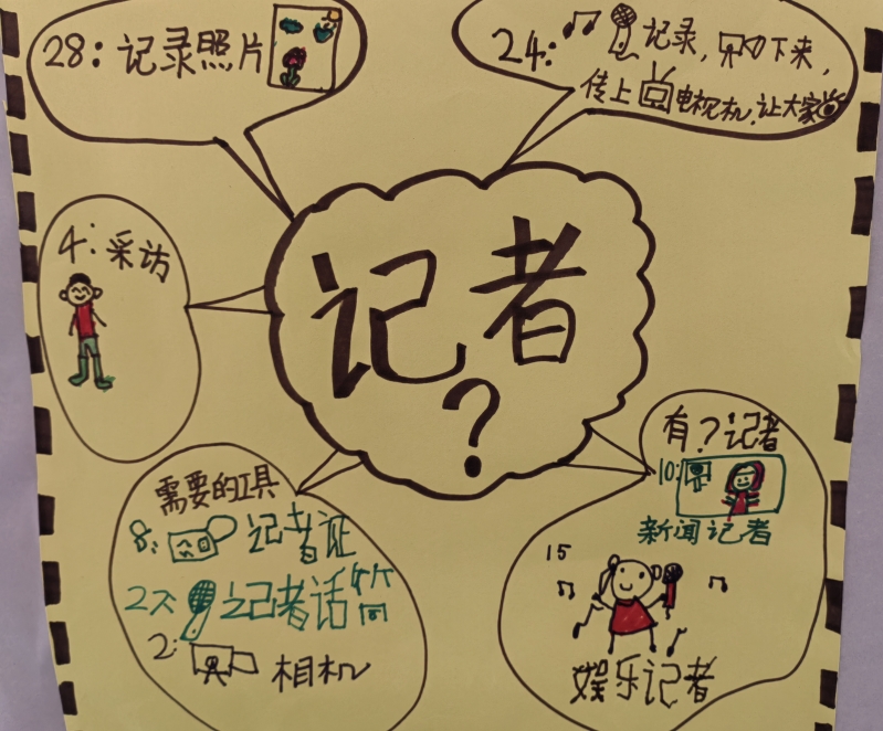 “小朋友们,你们知道‘记者’是什么样的人,究竟是干什么的吗?”孩子们七嘴八舌地展开了讨论。