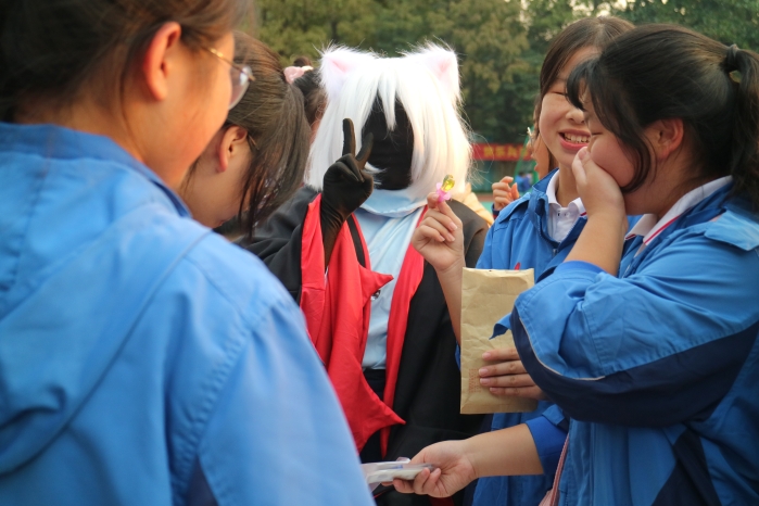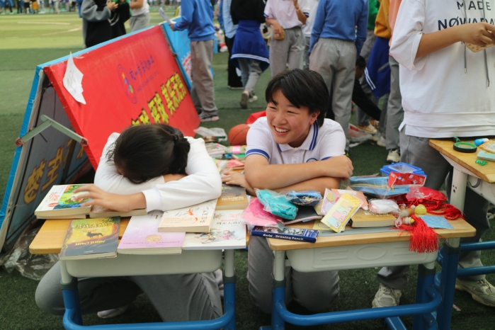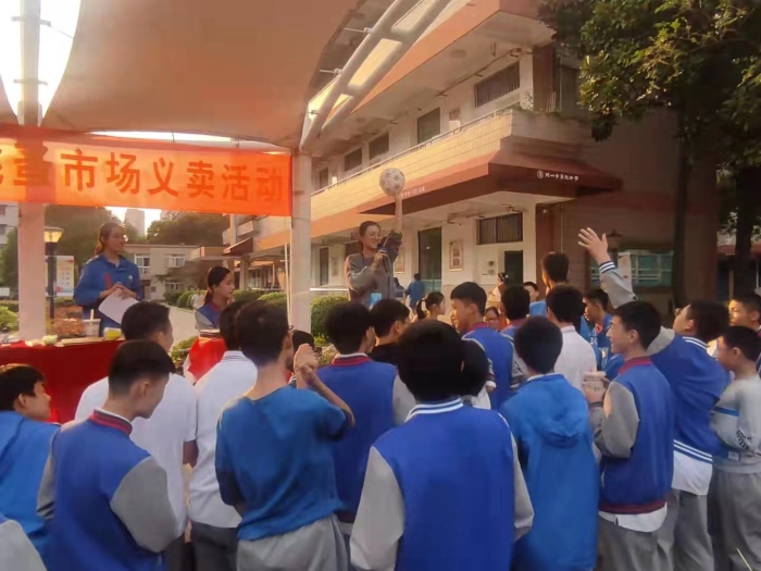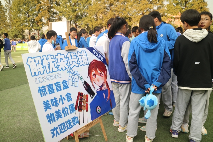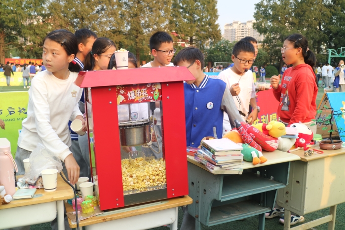 在这阳光明媚的下午,现场氛围霎时变得特别活跃,热火朝天——“来一来看一看,走过路过不要错过”“新鲜出炉的泡面,香飘十里,不买就吃亏”都是同学们销售时的声音,整个义卖市场应接不暇,得到了不少路过的老师、学生、家长的积极响应。