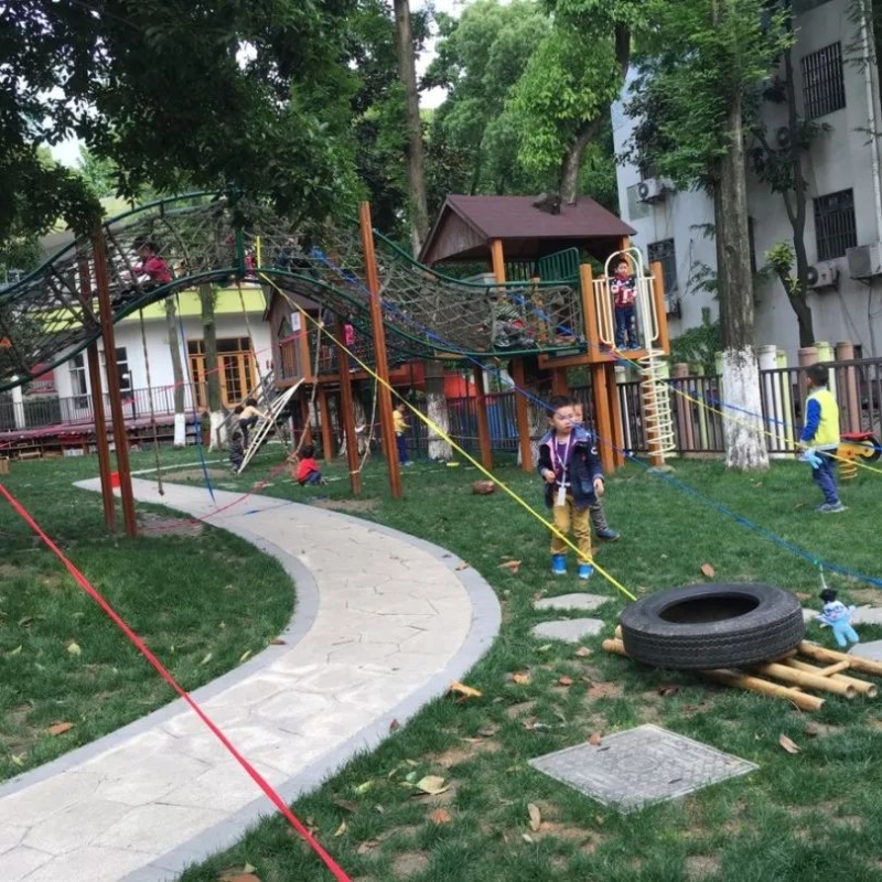 杭州市半山幼儿园半山路园区是个“森林里”的幼儿园,有个自然资源丰富的大庭院,开展着各种庭院活动: