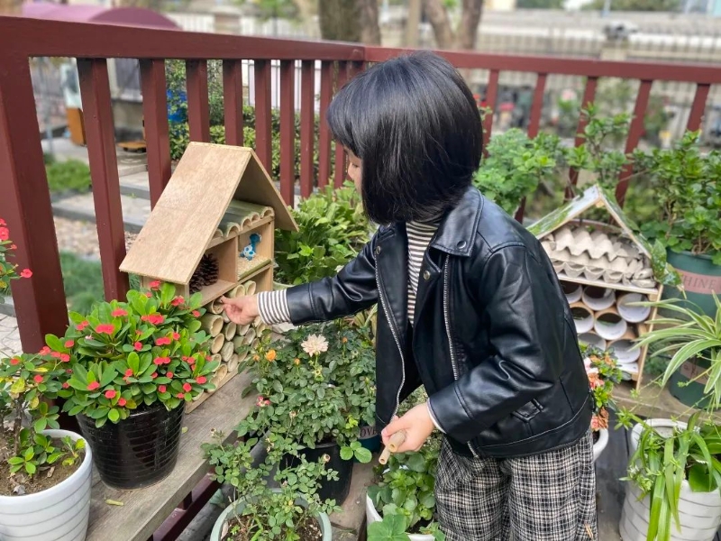 在自然角、种植地设专用园林垃圾桶——“落叶的家”,可随手投放孩子使用后的破损落叶、以及自然角整理出的杂草、开败的花。让园林垃圾不混入其他垃圾桶。
