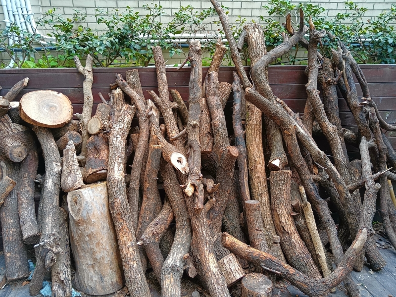 留下可以开展活动的部分:日常掉落的叶子、树枝,通过收集、修整统一固定摆放,可供日常活动按需取材。